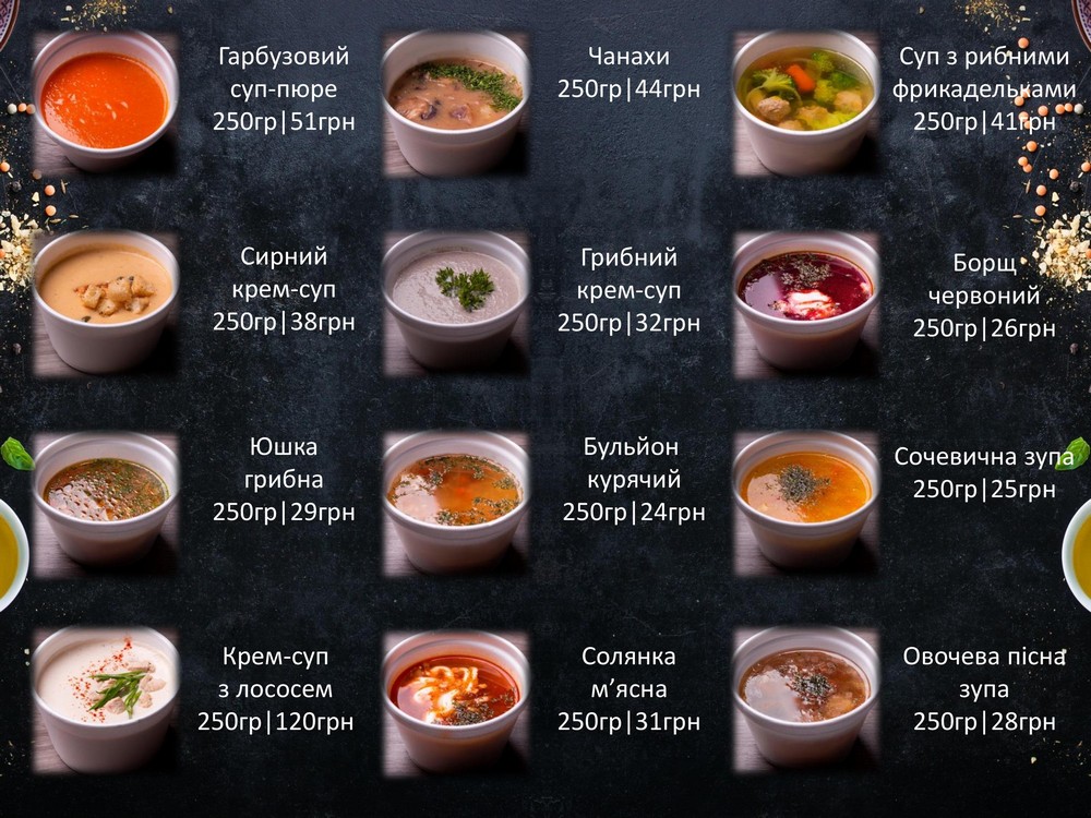 Ланч — Меню